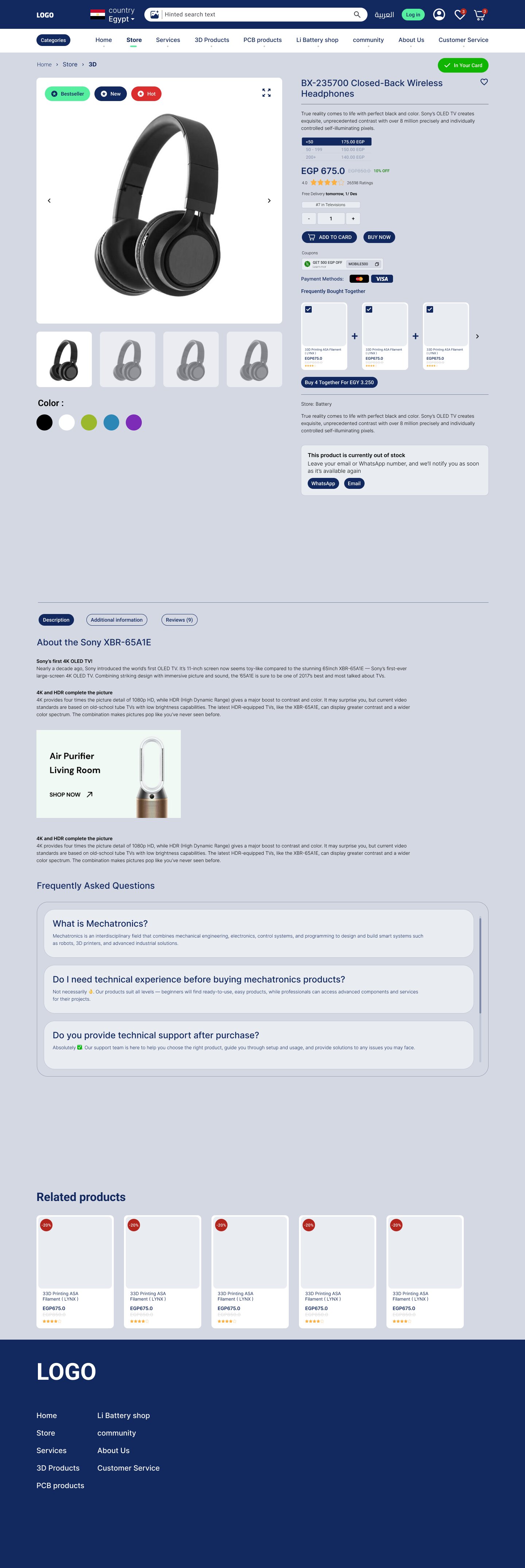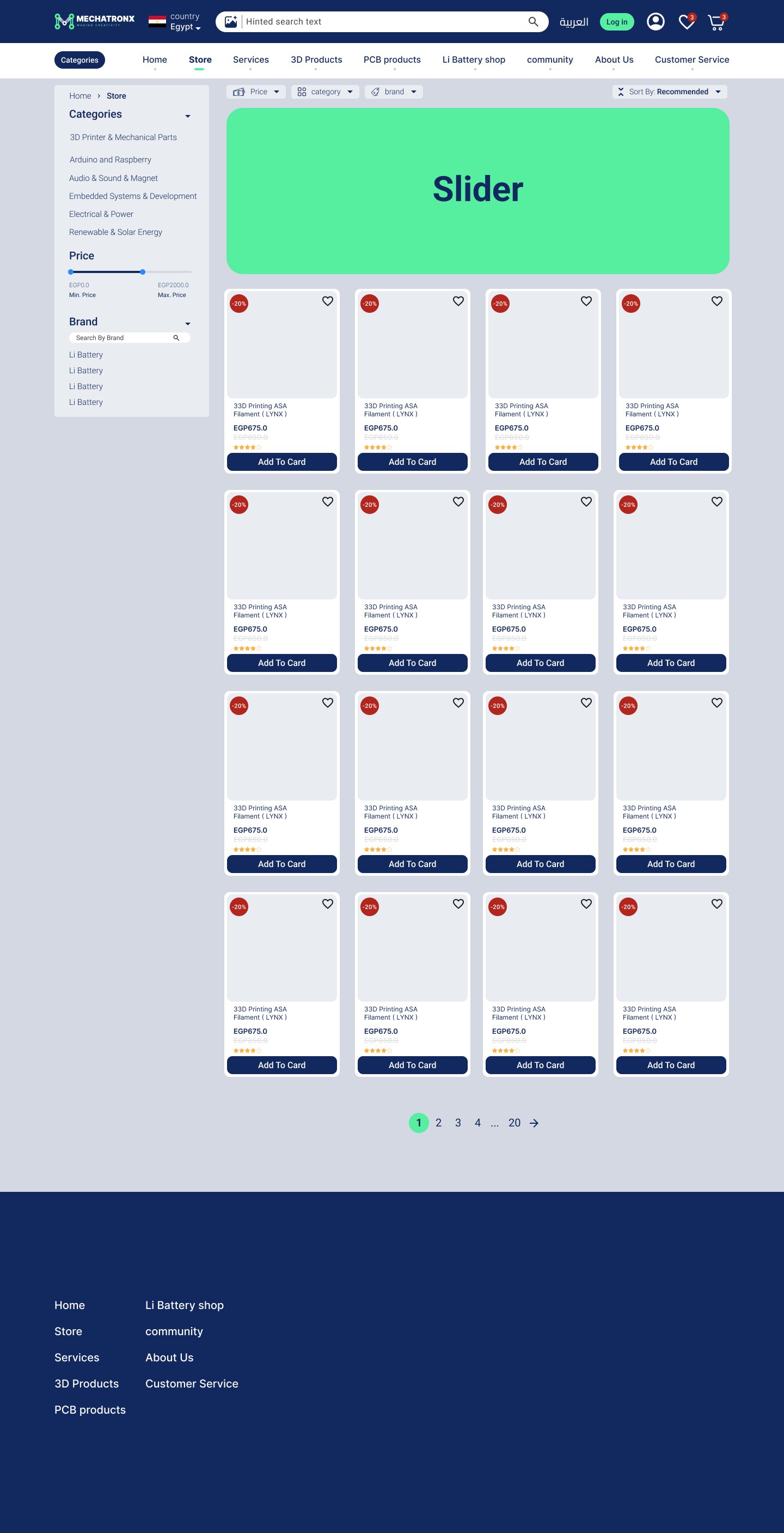 صمّمت منصة Mechatronx كمتجر إلكتروني متكامل لمنتجات وخدمات الميكاترونكس، من الطباعة ثلاثية الأبعاد إلى لوحات PCB والروبوتيكس. التحدي كان في دمج تجربة التسوق مع عرض خدمات هندسية متخصصة في واجهة واحدة سلسة وسهلة الاستخدام.